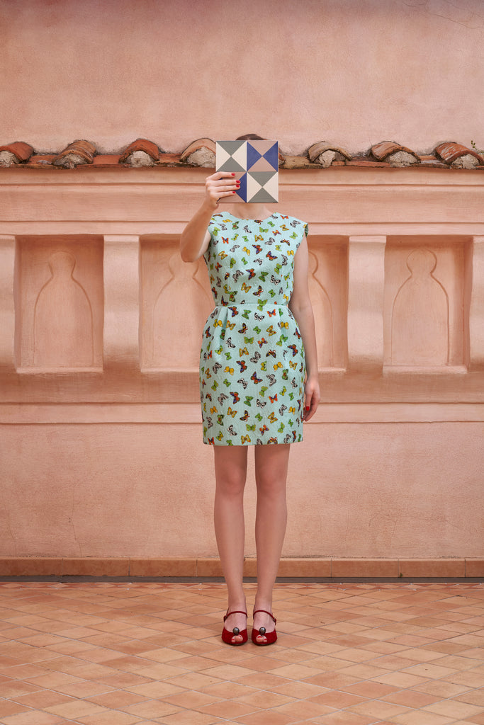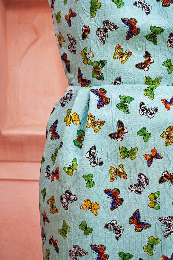 A short dress in a floral iconic vintage pattern by Gianni Versace from Caterina Gatta private archive.