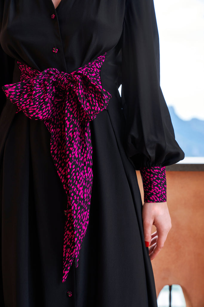 Handmade silk buttons.