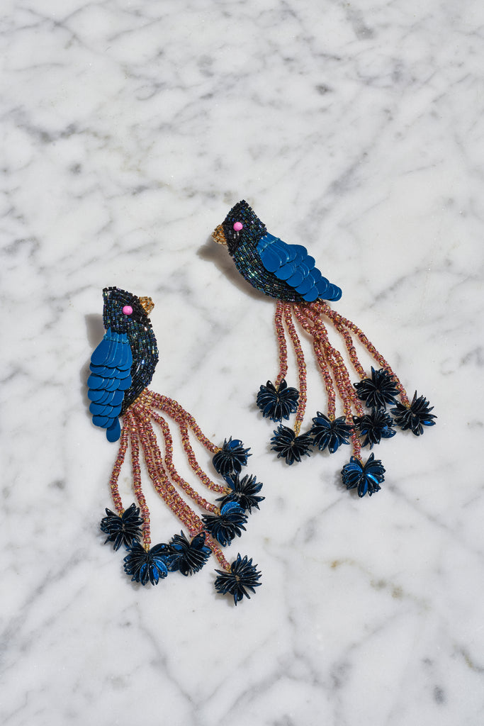 Composition: seed beads, sequins, leather backing and gold plated brass post.