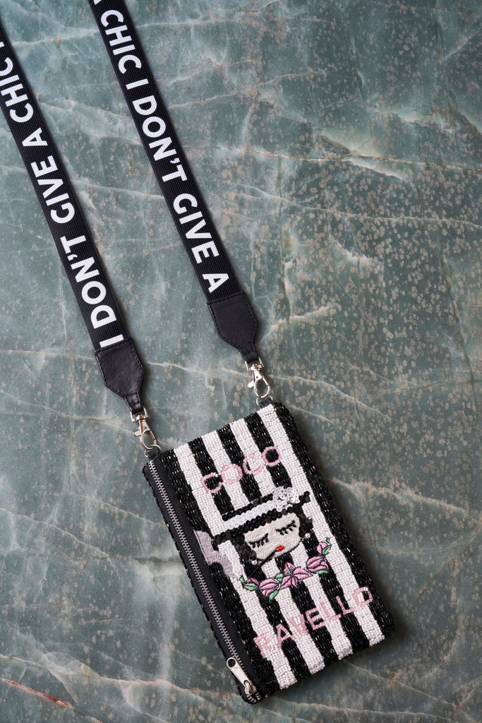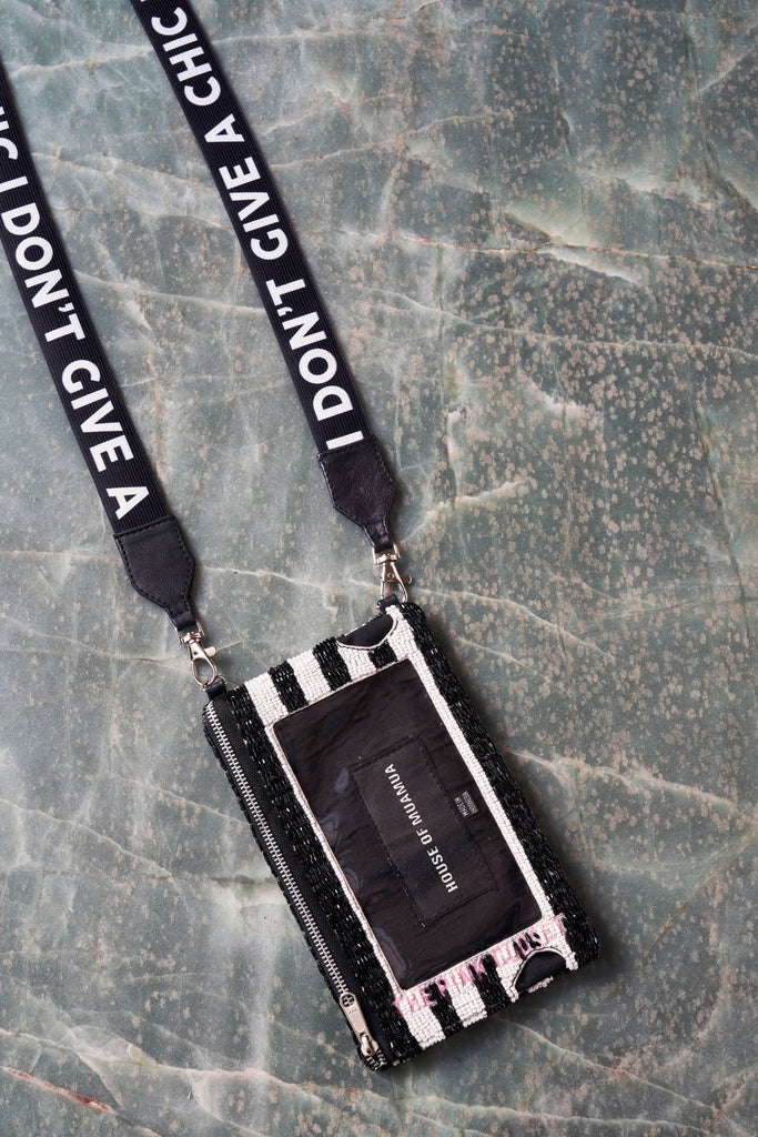 Black and White Phone Bag with "I do not give a chic" stripe.
