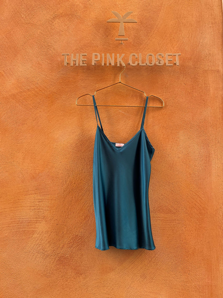 Pink Dreams Top, in a bright shade of Green, is made from lustrous silk-satin exclusively x The Pink Closet.