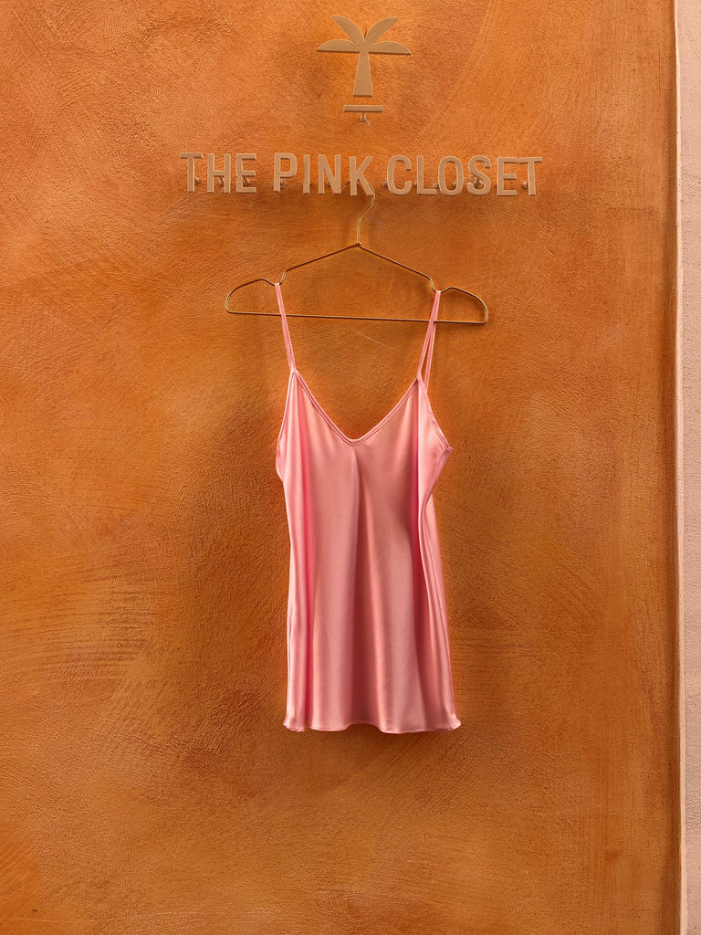 Pink Dreams Top, in a bright shade of Pink, is made from lustrous silk-satin exclusively x The Pink Closet.