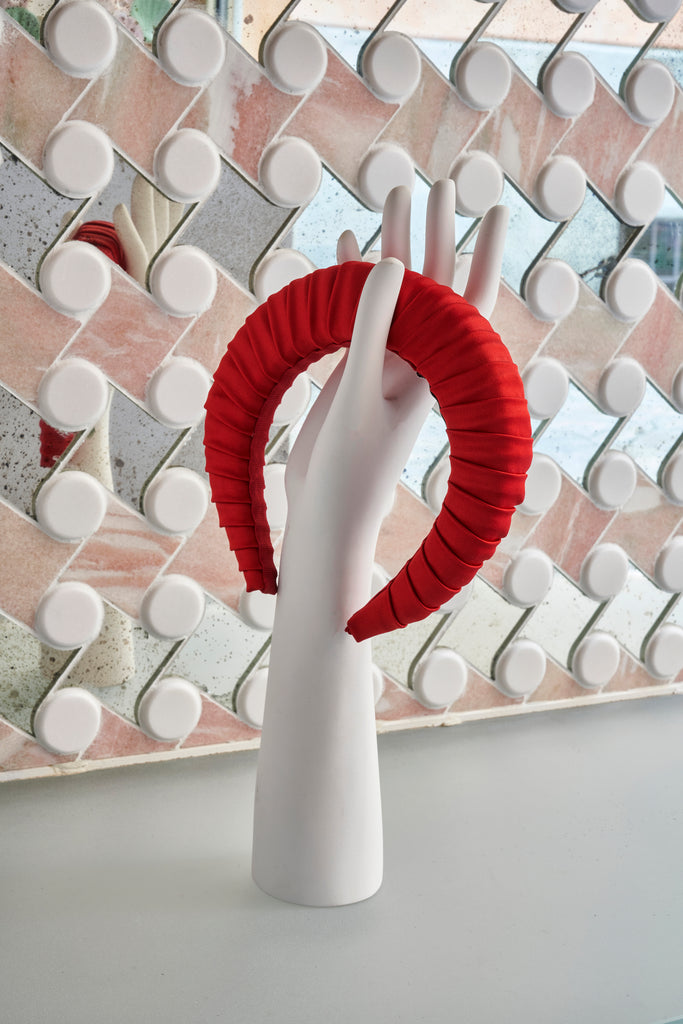 The headpiece of the Renaissance Courtesan: an exuberant velvet padded headband to adorn the face.
